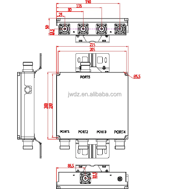 1710-2170MHz/1800-2100Mhz DIN Ženský RF pasivní diplexerový kombinátor